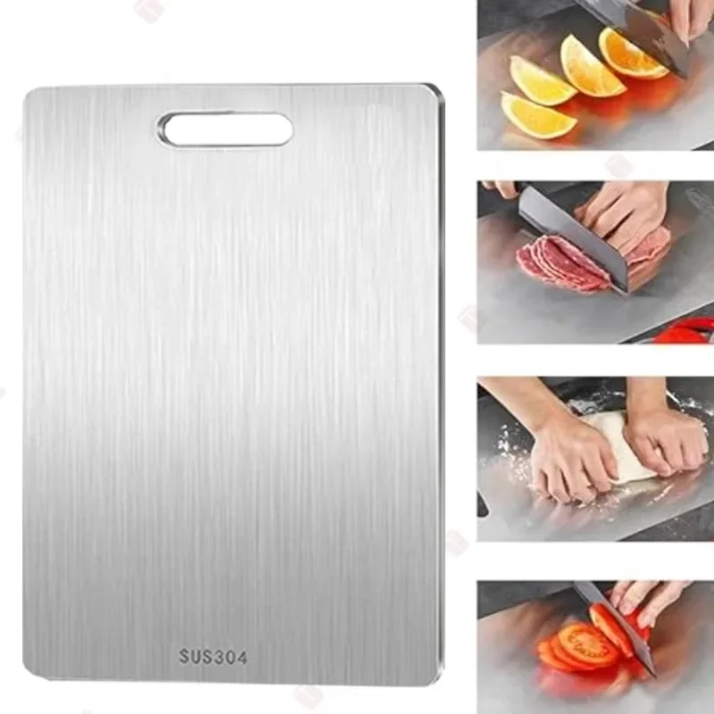 304 stainless steel material is unique and safe,the surface of the chopping board is very smooth, it is easy to clean.